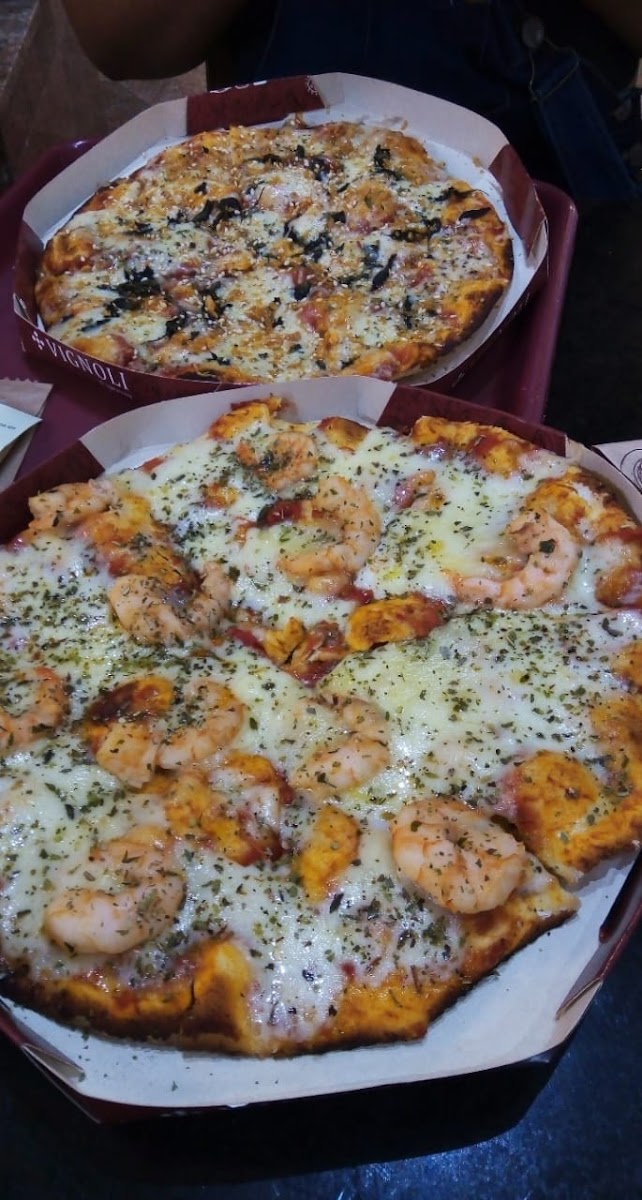 The menu at Vignoli Expresso reflects a balance between classic Italian-inspired comfort dishes and creative flavors. While pizza is clearly the highlight of the restaurant, several dishes deserve attention. One of the first things that caught my attention was the Pizza de Camarão, which brings together seafood flavors with a perfectly baked crust. The shrimp topping is generous and flavorful, making each bite satisfying without feeling heavy. Another standout from the pizza selection is the Pizza Vignoli, a house specialty that delivers exactly what you expect from a signature item-bold flavor, balanced toppings, and a crust that’s crisp on the outside but still soft inside.